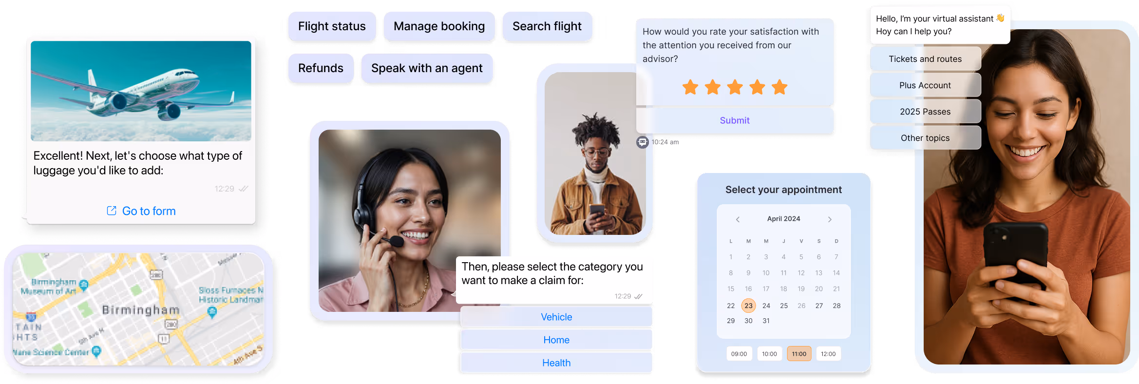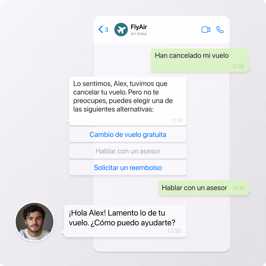 Mejora tus indicadores de CSAT y NPS ofreciendo un autoservicio más rápido e intuitivo, con una transición fluida hacia agentes cuando sea necesario. Ofrece a tus usuarios una combinación equilibrada de interacciones automatizadas y humanas que garantizan experiencias sin fricción, logrando hasta el doble de mejora en los niveles de satisfacción.