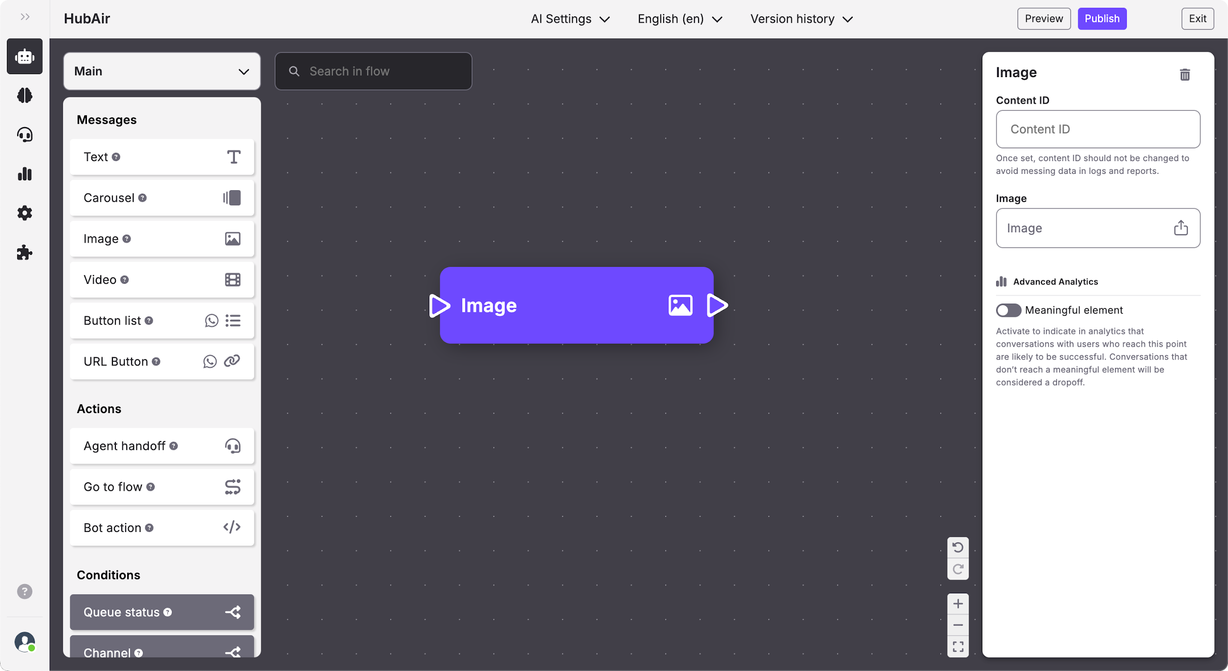 El contenido Imagen te permite añadir imágenes al flujo de la conversación.