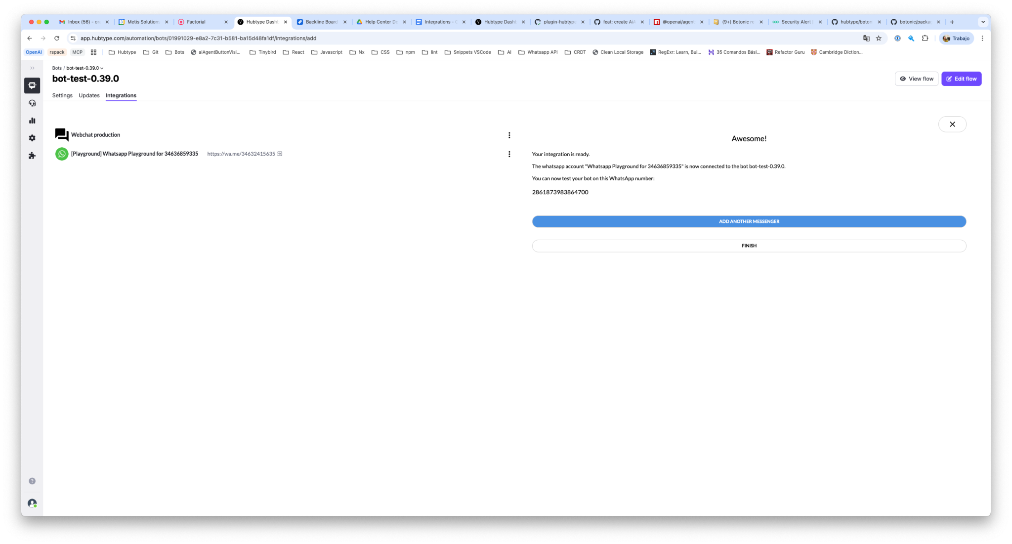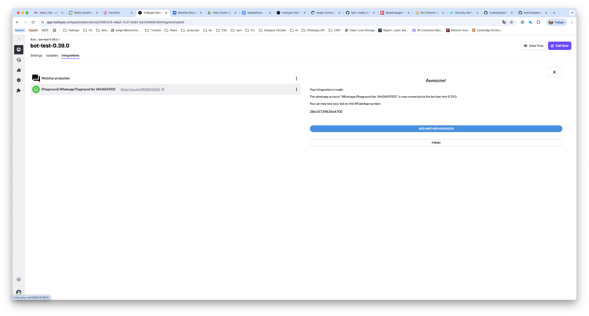 4. Finally you can talk to the bot using the link that appears in the integration.