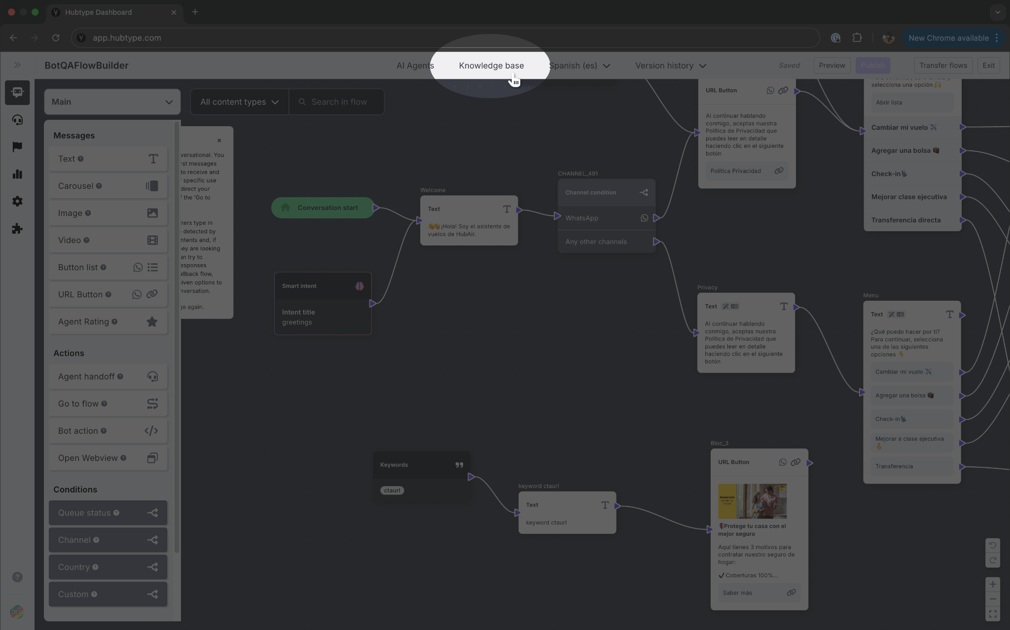 With the Knowledge Base Component, we can create smarter, more controlled conversations by making sure the bot responds only with the knowledge we choose.