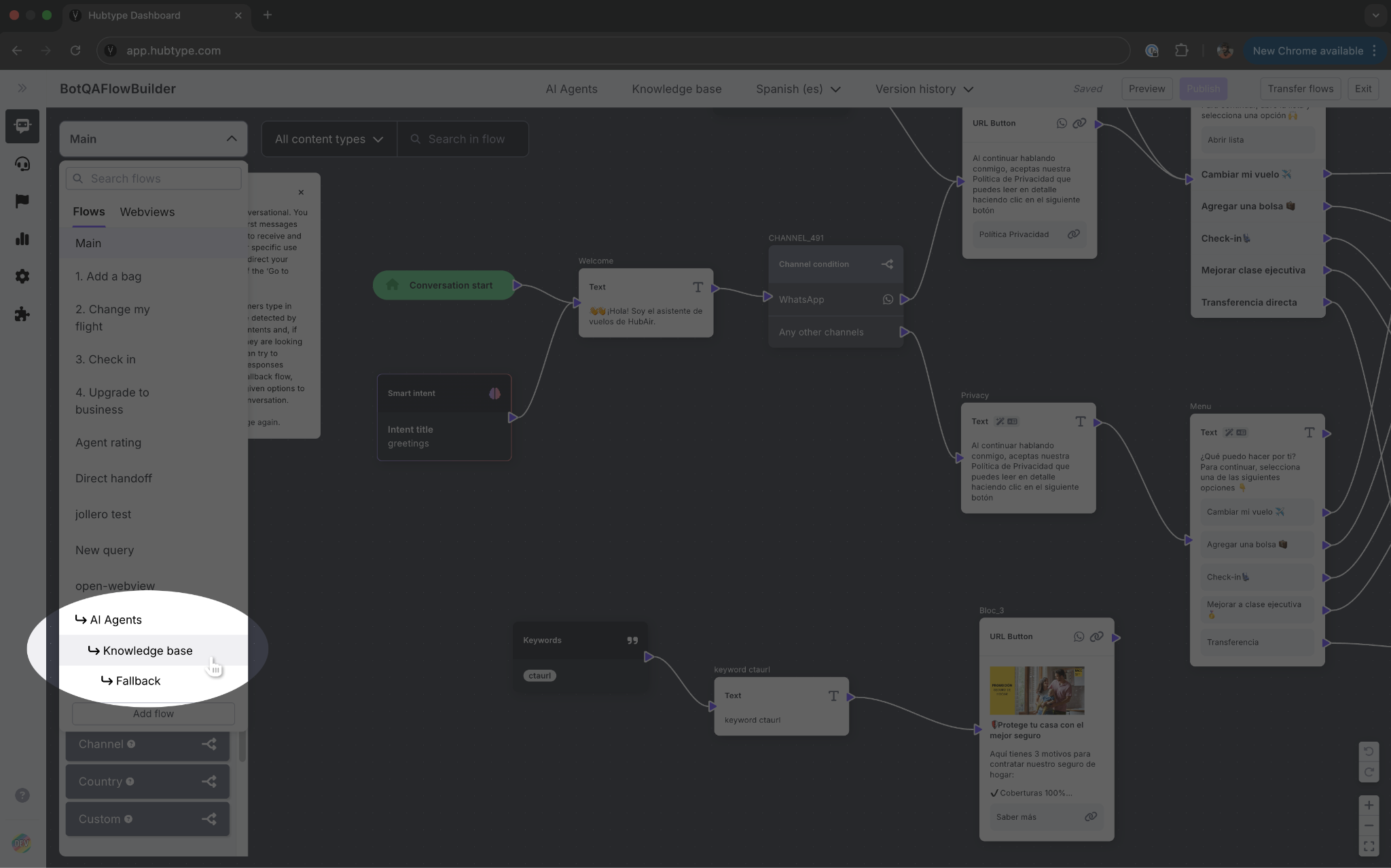 Once activated, you’ll find the Knowledge Base Flow in the Flows dropdown, where you can manage all related settings.