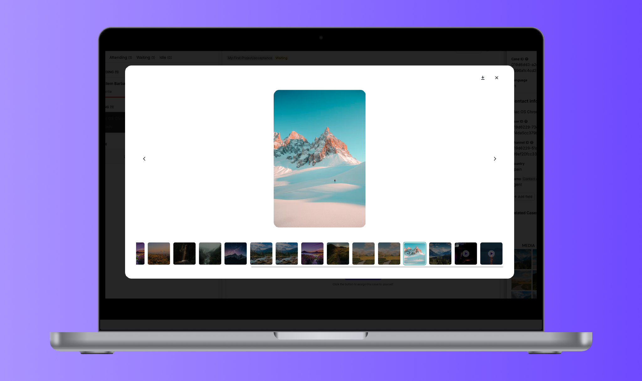New Media Carousel in Inbox: Agents can now browse all images and videos shared in a conversation through a smooth carousel view — a unified way to access all shared files in one place.