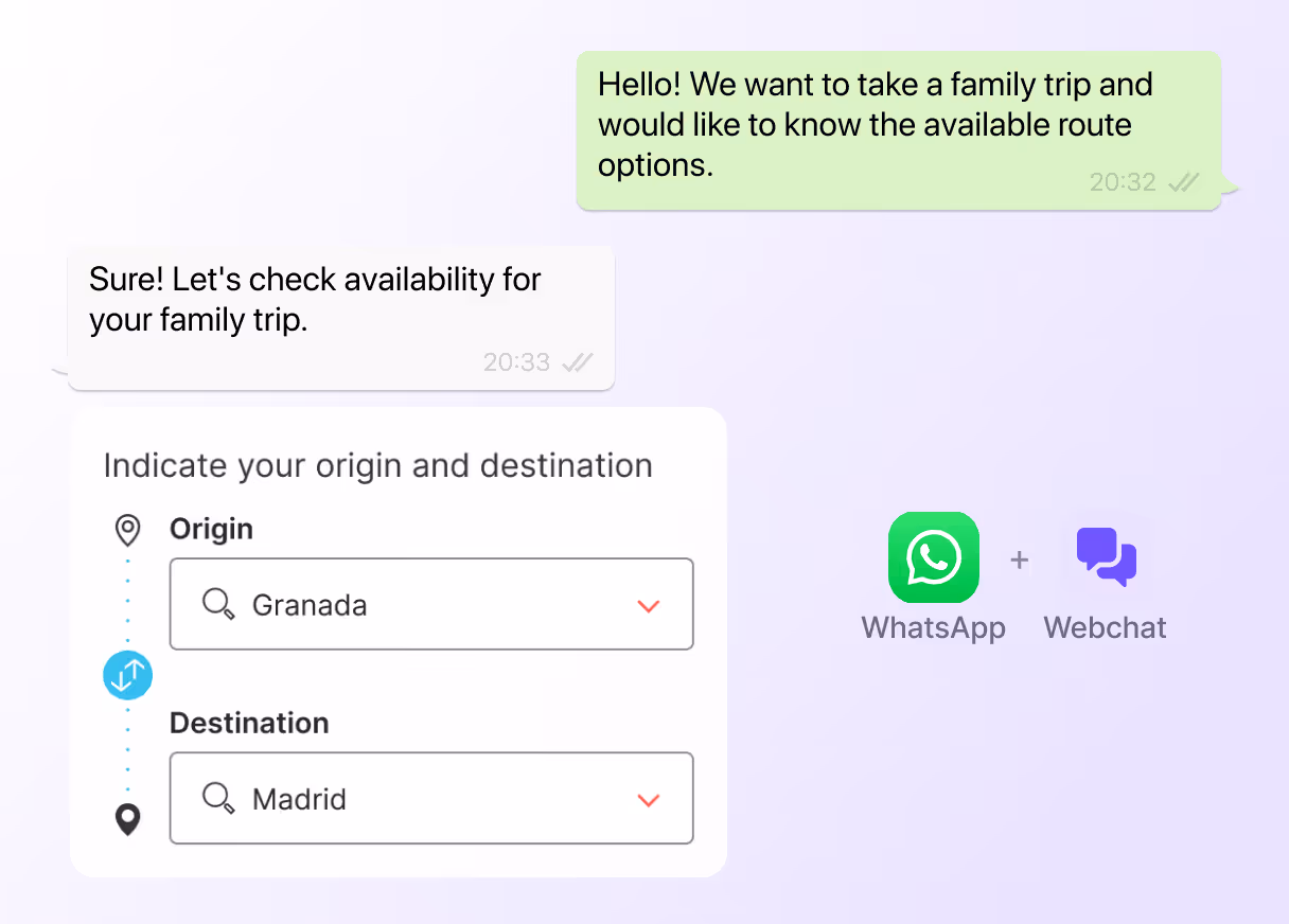 To ensure the bot could handle the widest possible range of questions and use cases, all information related to the most common contact reasons—such as itineraries, schedules, prices, and luggage—was added to its knowledge base. At the same time, internal Alsa APIs were integrated, allowing the system to resolve specific queries about routes and real-time availability in a personalised way, offering users a smooth, fast, and tailored experience.